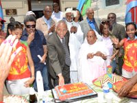 After the welcoming speeches, it was time for the traditional cake cutting ceremony in which elders in the community and leaders of the Peoples Front for Justice and Democracy (PFDJ, PFDJ2 and Y-PFDJ) and the National Union of Eritrean Women (NUEW) joined the dignitaries to cut the cake. In addition, there was popcorn and Hambasha, the traditional bread and champagne to toast the celebrations.